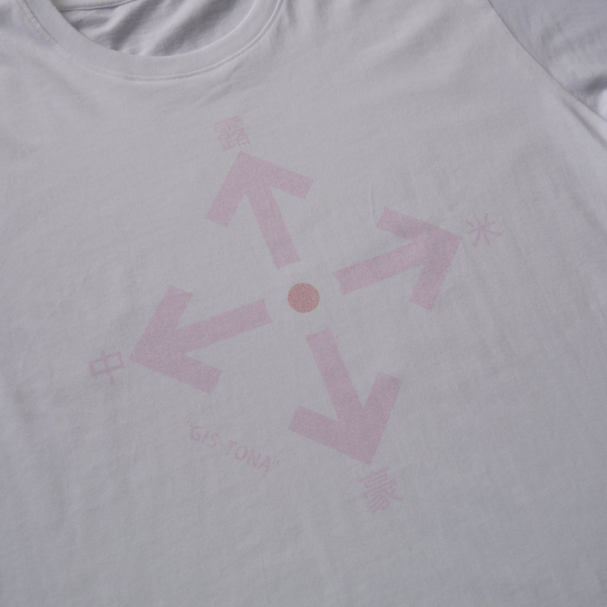 ・faded pink logo on the front
